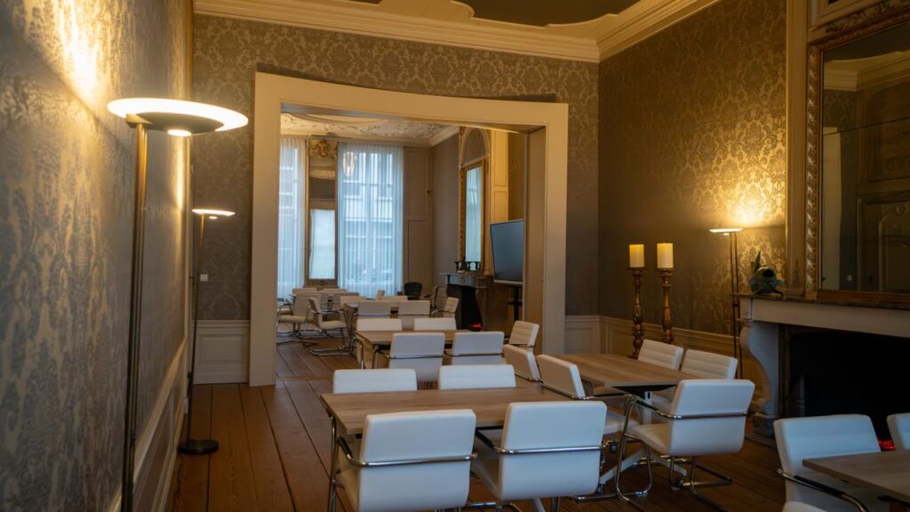 De ruimtes bestaan uit een aaneengesloten voor- en achterkamer, een subruimte, die tevens dienst doet als lunchruimte, en mogelijkheden tot gebruik van de keuken. Wij bieden persoonlijke aandacht. Verhuur vindt steeds plaats aan één organisatie. Alle faciliteiten voor een professionele bijeenkomst zijn aanwezig.